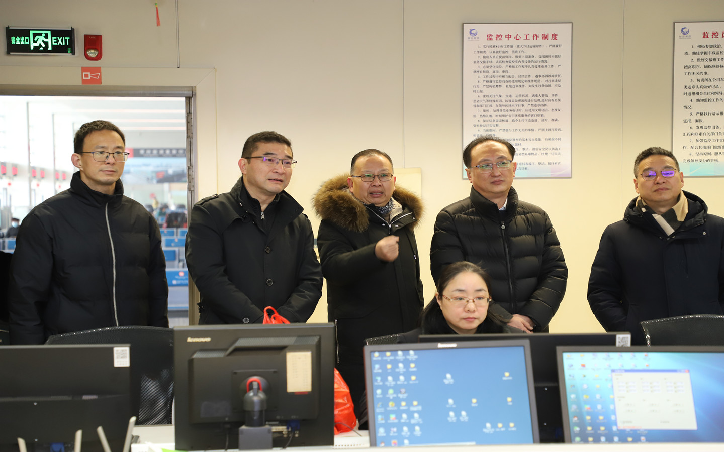 局領(lǐng)導(dǎo)一行代表市局對車站服務(wù)臺、售檢票窗口、監(jiān)控中心、調(diào)度室等地進(jìn)行走訪,對堅(jiān)守崗位的職工進(jìn)行慰問并送上慰問品。朱平春介紹了公司春運(yùn)期間的運(yùn)力組織、服務(wù)保障及安全管理情況。局領(lǐng)導(dǎo)表示節(jié)假日期間要加強(qiáng)車輛及駕駛員的現(xiàn)場管理,保證行車安全,同時(shí)要不斷提升服務(wù)質(zhì)量,提供溫馨的乘車環(huán)境,確保旅客能夠順利返鄉(xiāng)。